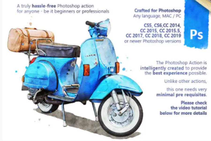 ویژگی های مهم Aquarelle Photoshop Action: